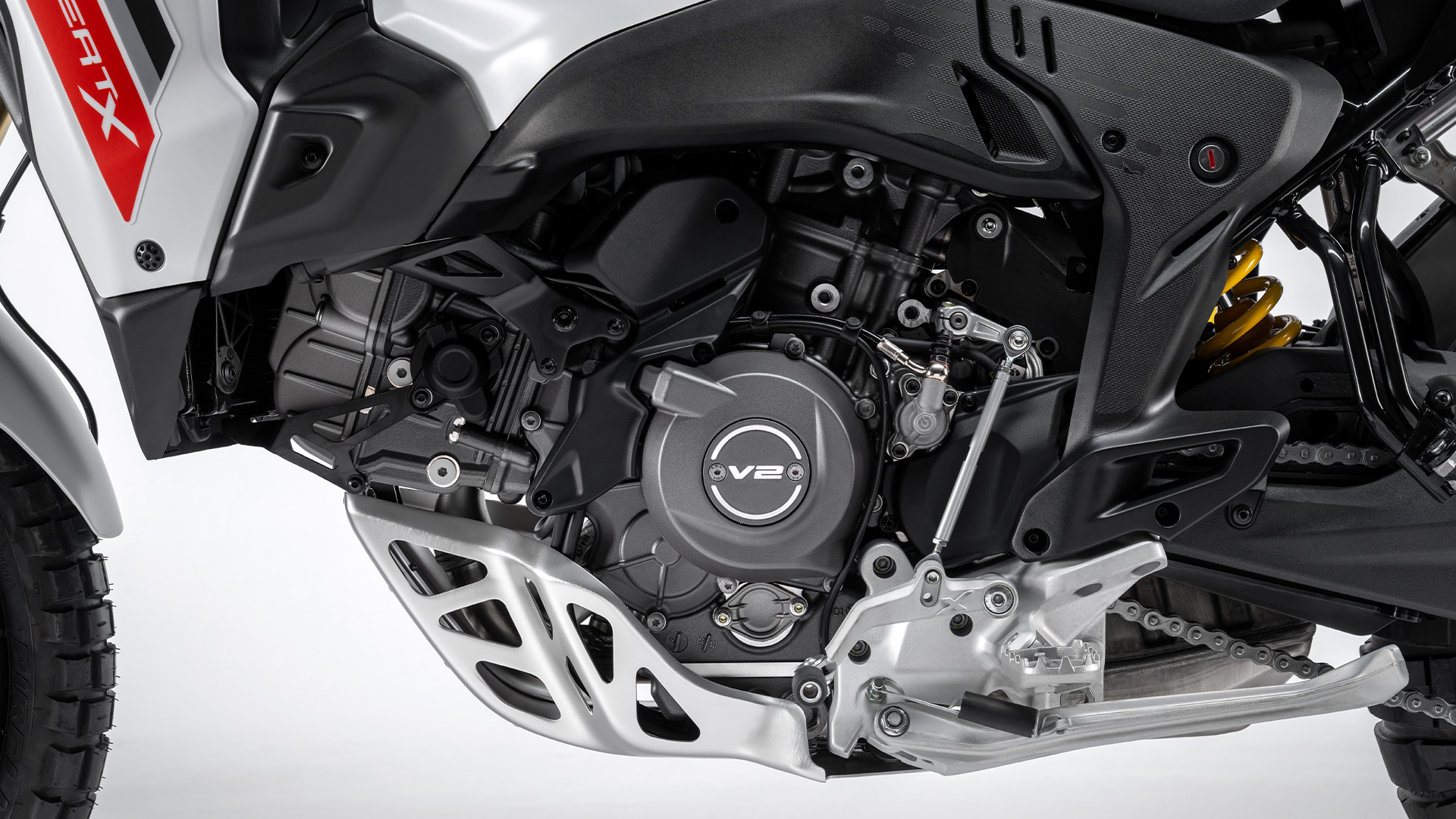 Partea din spate are un design tehnic si minimalist care evidentiaza caracterul offroad al motocicletei. Permite montarea accesoriilor precum rezervor suplimentar de combustibil, maner pentru pasager si suport pentru cutii laterale, lasand vizibile toate elementele tehnice importante, precum suspensia progresiva.