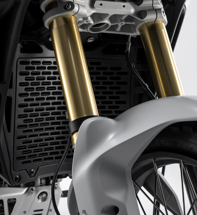 Noul rezervor din polimer, cu o capacitate de 18 litri, este mai suplu si mai usor, facilitand miscarea pe sa, iar datorita protectiilor tip crash pad este rezistent la cazaturi tipice la viteza mica in offroad. In plus, constructia rezervorului asigura o pozitionare joasa, coborand centrul de greutate al motocicletei si imbunatatind manevrabilitatea si agilitatea.