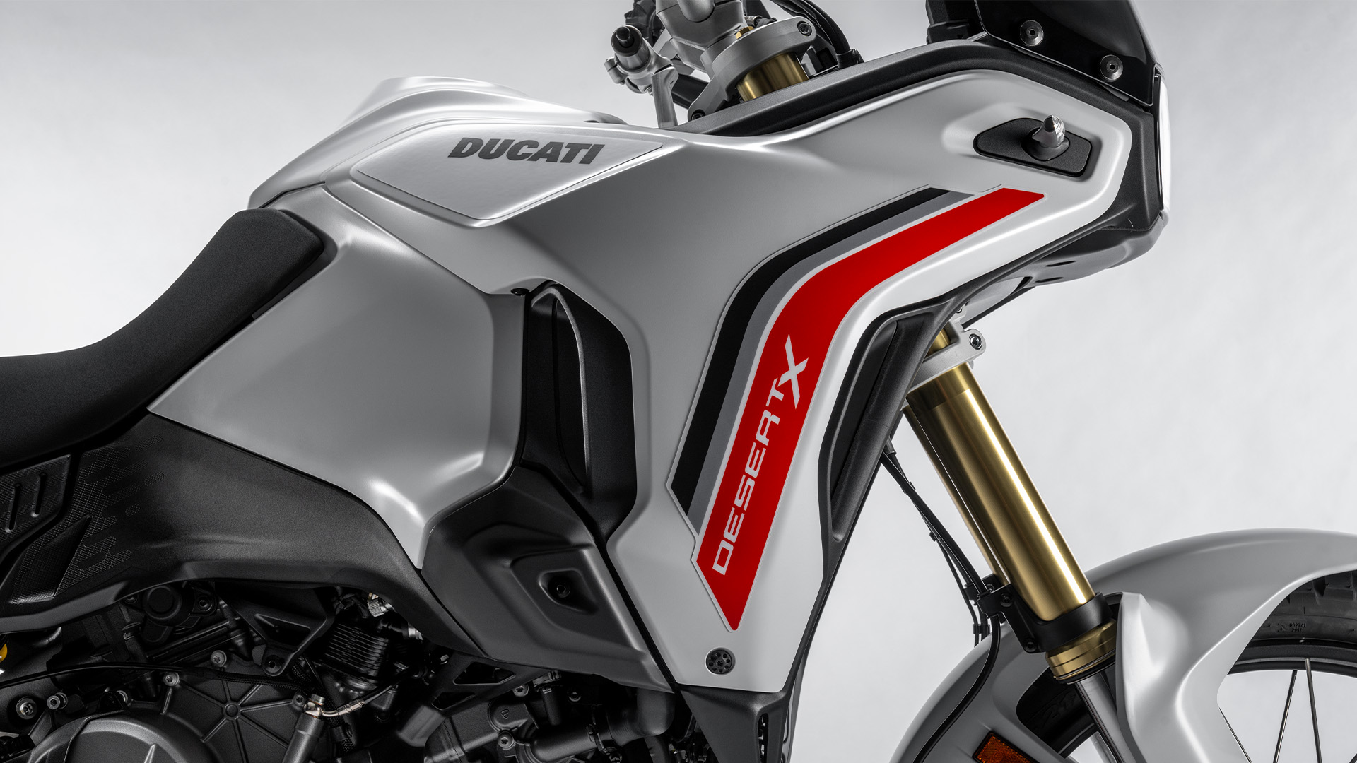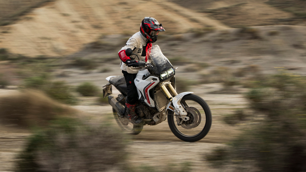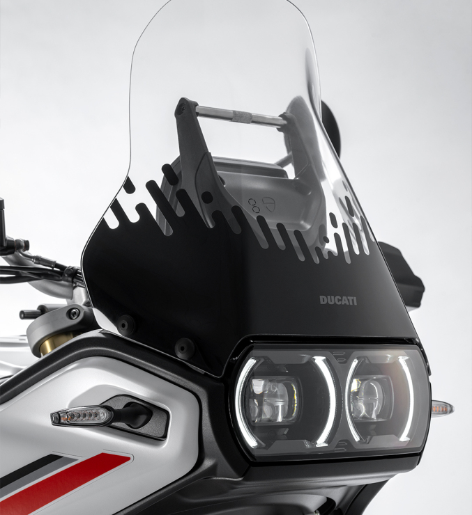 Stilul Ducati DesertX, inca de la prima vedere, urmeaza principiul „forma urmeaza functionalitatea”. Partea frontala coborata cu 20 mm face ca motocicleta sa fie mai dinamica si mai usoara. Vederea laterala si farurile frontale reinterpreteaza conceptele modelului anterior. Solutiile precum canalele care directioneaza fluxul de aer pentru a imbunatati confortul termic si rezervorul de combustibil mai suplu, protejat cu elemente din plastic, fac motocicleta mai bine adaptata pentru utilizare offroad.