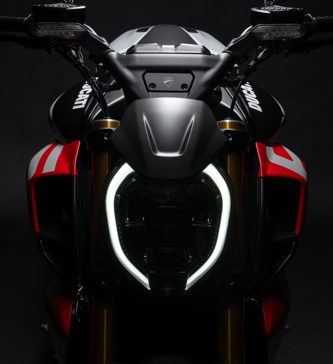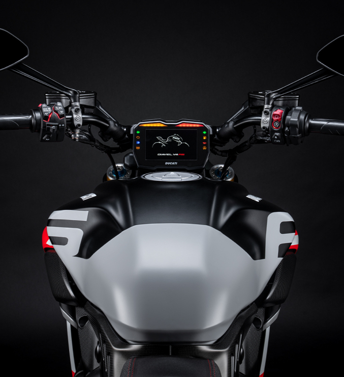 Detaliile tehnice si stilistice fac din Diavel V4 RS un model unic. Logoul RS, proiectat de Centro Stile Ducati, apare in vopsirea dedicata, pe cheia de contact si in animatia afisata la pornirea contactului. Diavel V4 RS are un design complet nou, dar si-a pastrat identitatea inconfundabila. Elementele din fibra de carbon contribuie la un aspect si mai sportiv si exclusivist, reducand greutatea motocicletei cu 3 kilograme.