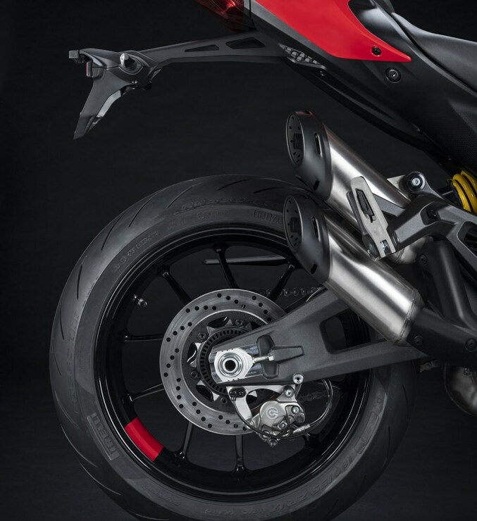 Monster este oferit in trei versiuni de culoare. Poti alege intre Ducati Red, Dark Stealth si Aviator Grey cu roti rosii. Aspectul poate fi personalizat cu seturi de autocolante, precum si cu accesorii din catalogul Ducati Performance.