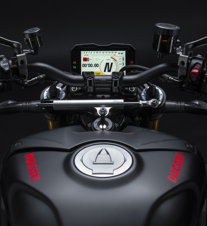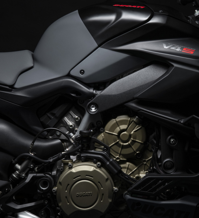 Rezervorul de combustibil, cu o capacitate marita la 17 litri, are aceeasi forma ca la modelul Panigale V4 din 2022. A fost reproiectat pentru a oferi o pozitie mai buna pilotului in timpul franarii si la viraje. Noua rama "Front Frame" si motorul Desmosedici Stradale raman expuse, creand o forma curata si rafinata.
